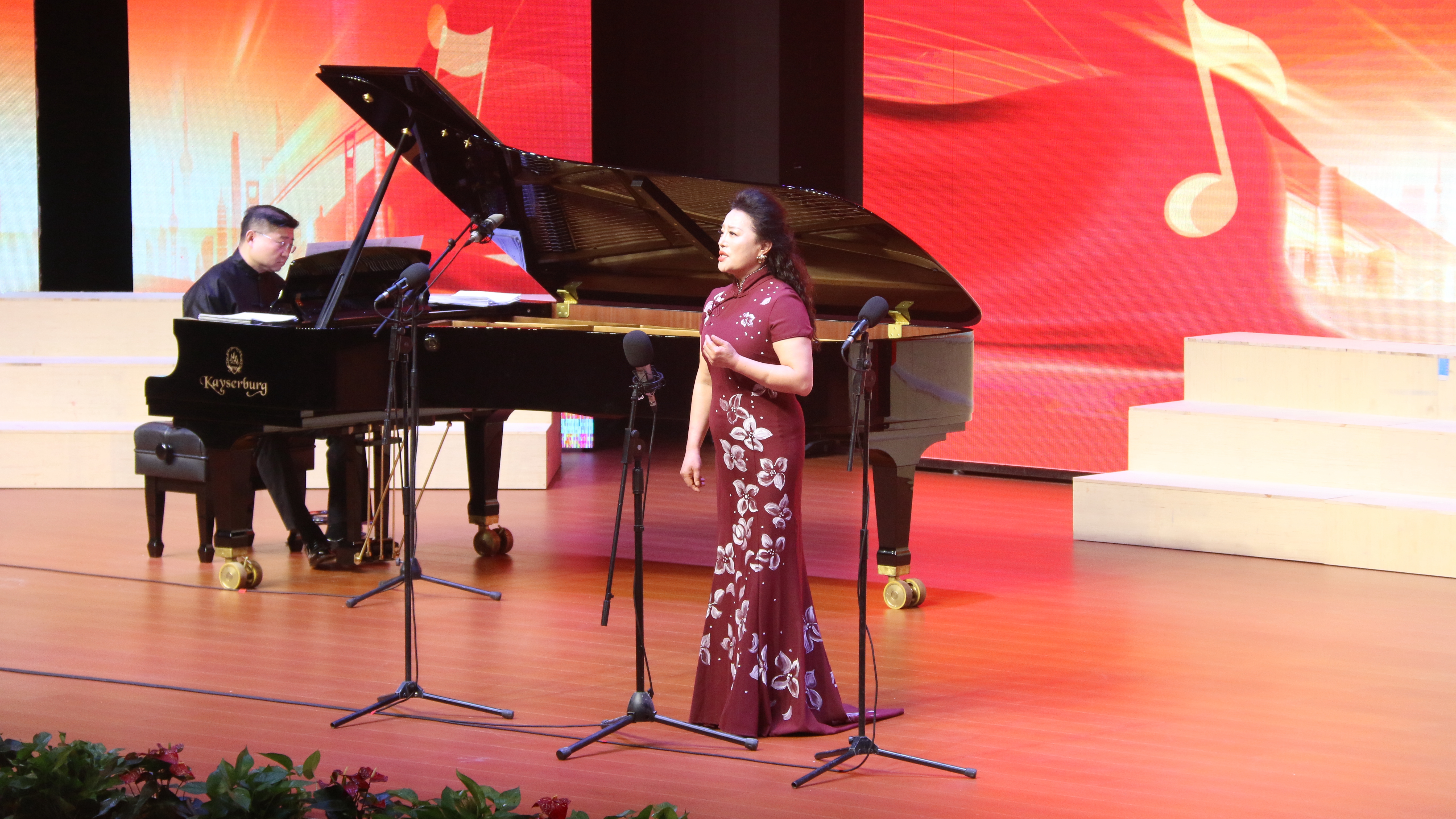 音乐会分为两个篇章,第一篇章以艺术歌曲为主,第二篇章涵盖了经典歌剧唱段、创作歌曲及影视歌曲,内容丰富、形式多样。尹云芝教授以一首《静夜思》深情开场,饱含深情、富有感染力的歌声,赢得了现场阵阵掌声与喝彩。员工们则以精湛的技艺,充分展现了学校音乐教育的优秀成果。随着《我和我的祖国》旋律的响起,全场观众自发起立,共同唱响,将现场气氛推向了顶点。