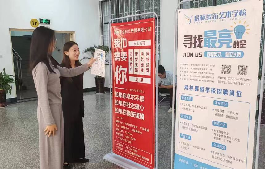 本次招聘会参会企业有西亚商业公司、信阳市易林舞蹈艺术学校两家企业,共计提供就业岗位50余个,涉及专业老师,课程项目顾问,宣传运维,经营管理,企业运营,财务管理等就业岗位。这些企业进入到校园与员工近距离接触交流,除了介绍企业文化和岗位工作详情之外,用人单位人事部门更能与员工面对面交流职业生涯规划的思路与方法,帮助毕业生能够更快更好地在职场中寻求一席之地。而毕业生们更是手持精心制作的简历,满脸自信地与招聘人员交流,展现自己的专业学识和综合素质;同时也从自身的优势和需求,全方位了解各公司的基本情况及未来发展前景,并对就业岗位设置、薪酬待遇、培训安排、职业规划等进行了深度咨询。